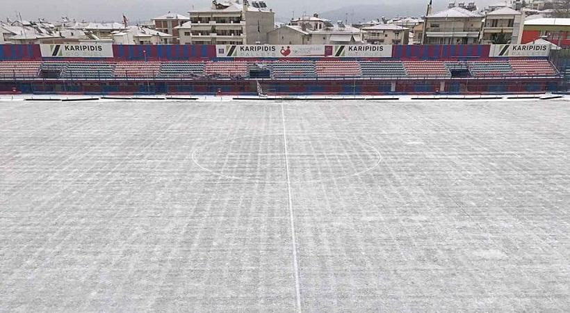 Ο αγωνιστικός χώρος του γηπέδου της Ημαθίας καθαρίζει σταδιακά από τον χιόνι, με το μοναδικό πρόβλημα που υπάρχει πλέον να έχει δημιουργηθεί από τη χαμηλή θερμοκρασία.