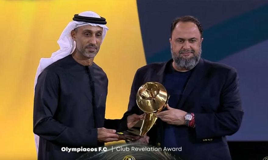 Ο Ολυμπιακός τιμήθηκε με το βραβείο της αποκάλυψης της χρονιάς στα Globe Soccer Awards, με τον Βαγγέλη Μαρινάκη να παραλαμβάνει την τιμητική διάκριση για τους Πειραιώτες και να λέει μερικά λόγια για την τρομερή σεζόν 2023/24 αλλά και τα παιδιά των ακαδημιών του κλαμπ.