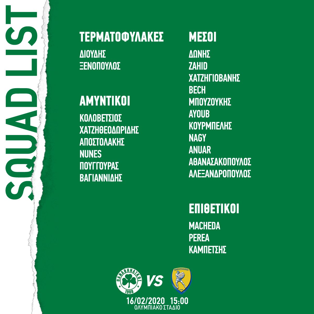 Ο Ολλανδός είναι στην αποστολή των πράσινων για το παιχνίδι με τον Παναιτωλικό από την οποία απέχουν οι Σένκεφελντ, Γιόχανσον και Ινσούα.