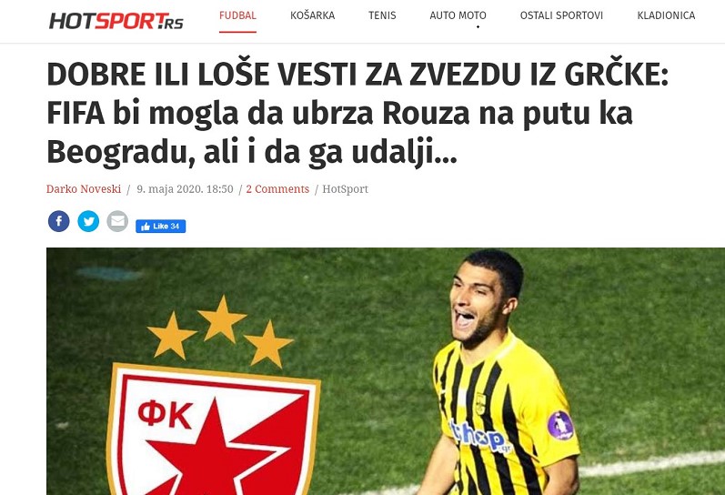Από την πλευρά τους, τα δημοσιεύματα στη Σερβία κάνουν λάθος αναφορές στην ποινή που επιβλήθηκε στον Άρη από τη FIFA σχετικά με την ποινή απαγόρευσης μεταγραφών, υποστηρίζοντας ότι οι Θεσσαλονικείς θέλουν να πουλήσουν παίκτες για να μπορέσουν να εξοικονομήσουν χρήματα.