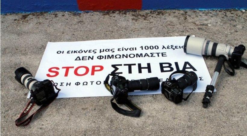 Οι φωτογραφικές μηχανές έμειναν στο πάτωμα για τα πρώτα 15 λεπτά των ματς στη πρεμιέρα της Σούπερ Λίγκας και ένα πανό που ανέφερε: «Οι εικόνες μας είναι 1000 λέξεις. Δεν φιμωνόμαστε. STOP στη βία». υψώθηκε.