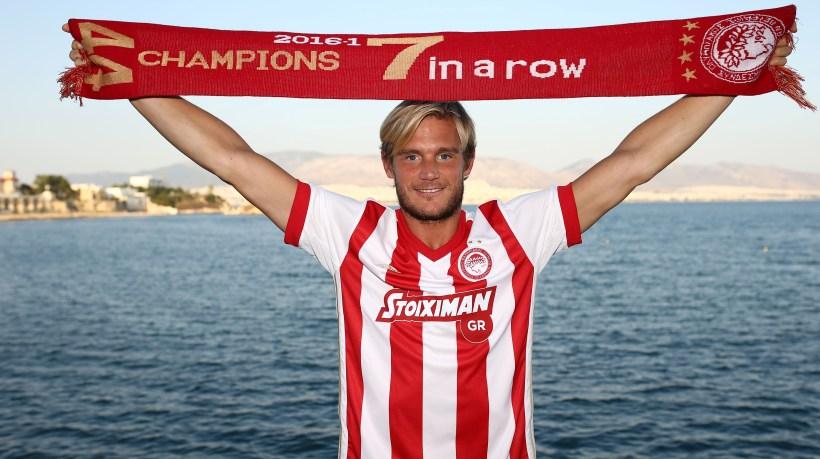 Ο Βέλγος χαφ υπέγραψε το συμβόλαιό του με τους Πειραιώτες κι εν συνεχεία φωτογραφήθηκε με τη φανέλα της ομάδας του.