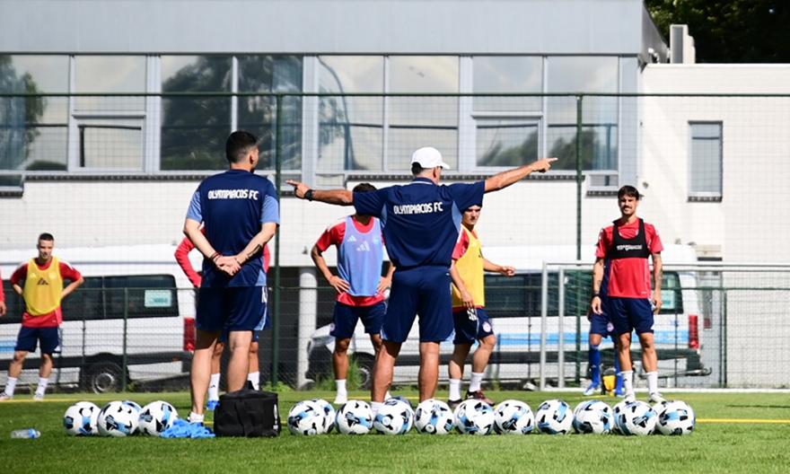 Ασκήσεις με μπάλα και μάλιστα από την πρώτη στιγμή στην προετοιμασία του Ολυμπιακού.