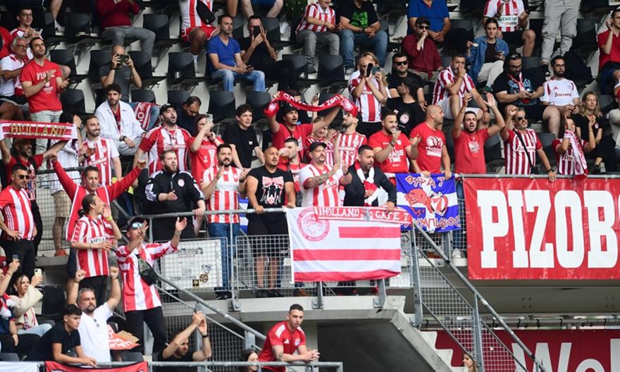 Με συνθήματα και έντονη παρουσία, οι «ερυθρόλευκοι» δίνουν δυναμικό παρών στην Ολλανδία, στηρίζοντας την ομάδα τους και στο τρίτο φιλικό της προετοιμασίας.