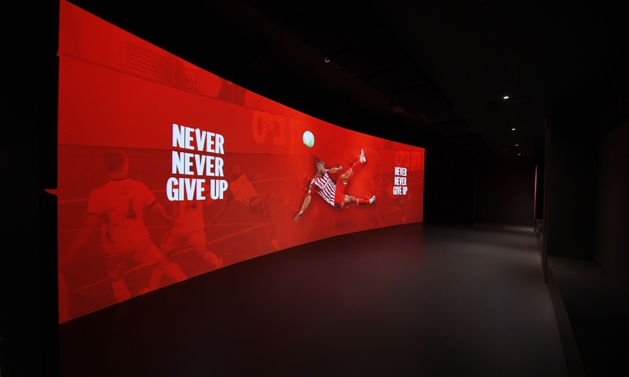 Με διαδραστικούς χώρους, οι επισκέπτες μπορούν να αλληλεπιδράσουν με το παρελθόν και να μπουν στη θέση των αθλητών του συλλόγου. Να ζήσουν ξανά μεγάλες στιγμές από την πλούσια ιστορία των «ερυθρόλευκων» και να γίνουν και πάλι… ένα κομμάτι με αυτές.