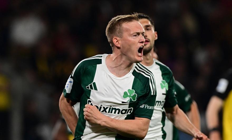 Ο Σφιντέρσκι από την άσπρη βούλα έβαλε μπροστά στο σκορ τον Παναθηναϊκό στην OPAP Arena, με τον Βαγιαννίδη να έχει κερδίσει ξεκάθαρο πέναλτι από τον Πιερό από δεξιά εντός περιοχής.