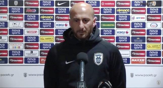 Για την απουσία του κόσμου, ένα αρνητικό ρεκόρ προσέλευσης: «Καταλαβαίνουμε ότι ο κόσμος είναι δυσαρεστημένος. Και εμείς καταλαβαίνουμε ότι δεν ήμασταν σε καλή κατάσταση, αλλά η άποψή μου είναι ότι ο κόσμος ότι πρέπει να έρχεται ο κόσμος για την ομάδα και όχι για τους παίκτες. Ο κόσμος αγαπάει τη φανέλα, την ιδέα που λέγεται ΠΑΟΚ. Είμαστε μεγάλη ομάδα και πρέπει να αντέχουμε την πίεση. Ο κόσμος πρέπει να αγαπάει την ομάδα και να είναι πάντα στο γήπεδο».