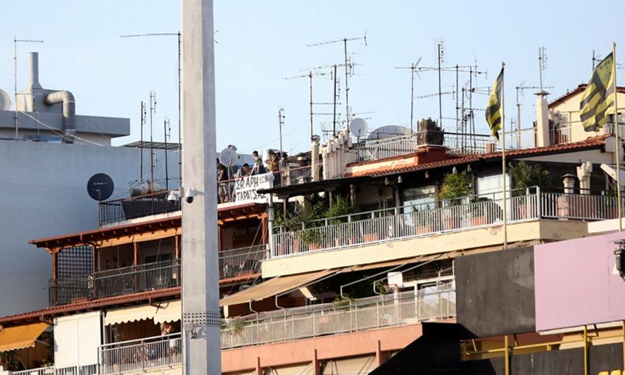 Δεν έχασαν την ευκαιρία να παρακολουθήσουν το κεκλεισμένων των θυρών ντέρμπι με τον ΠΑΟΚ οι οπαδοί του Άρη, που έχουν... θέα τον αγωνιστικό χώρο του γηπέδου από το σπίτι τους.