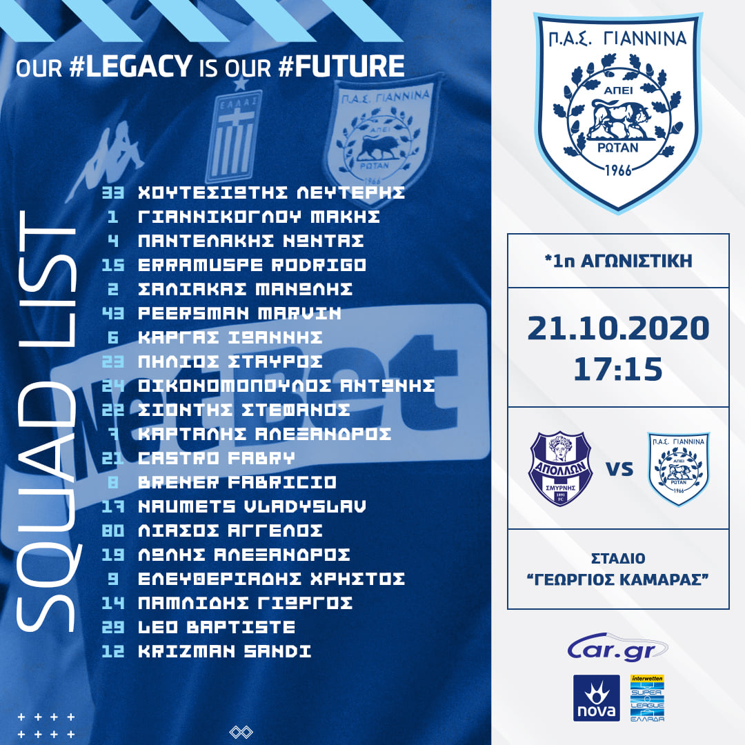 Ο Αργύρης Γιαννίκης δεν έχει στη διάθεσή του τον Ντομίνγκεθ που είναι τραυματίας, ενώ άφησε εκτός για λόγους τακτικής τους Πανουργιά, Γώγο, Γροσδάνη, Δούμτση, Νάτιντσουκ, Αθανασίου και Ξύδα.