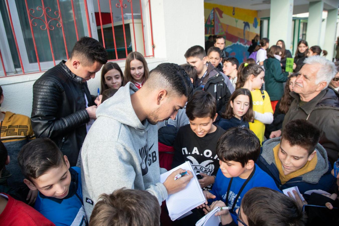 «Λίγο πριν αγωνιστούν μεταξύ τους για τους αγώνες των πλέι οφ του πρωταθλήματος της Superleague, οι Φιορίν Ντουρμισάι, Απόστολος Τσιλιγγίρης από τον Άρη και Δημήτρης Λημνιός, Δημήτρης Γιαννούλης από τον ΠΑΟΚ, συνοδευόμενοι από αντιπροσωπεία του ΠΣΑΠ, επισκεφθήκαμε το 1ο και 2ο Δημοτικό Σχολείο Πλαγιαρίου Θεσσαλονίκης και μιλήσαμε στα παιδιά για τις πραγματικές αξίες του αθλητισμού.