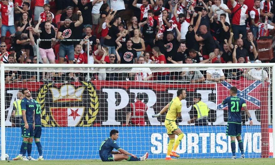 Μετά από φάση διαρκείας στα καρέ του Παναθηναϊκού, ο Στρανζ άνοιξε το σκορ για την Σλάβια Πράγας, η οποία πήγε στα αποδυτήρια με προβάδισμα (1-0).