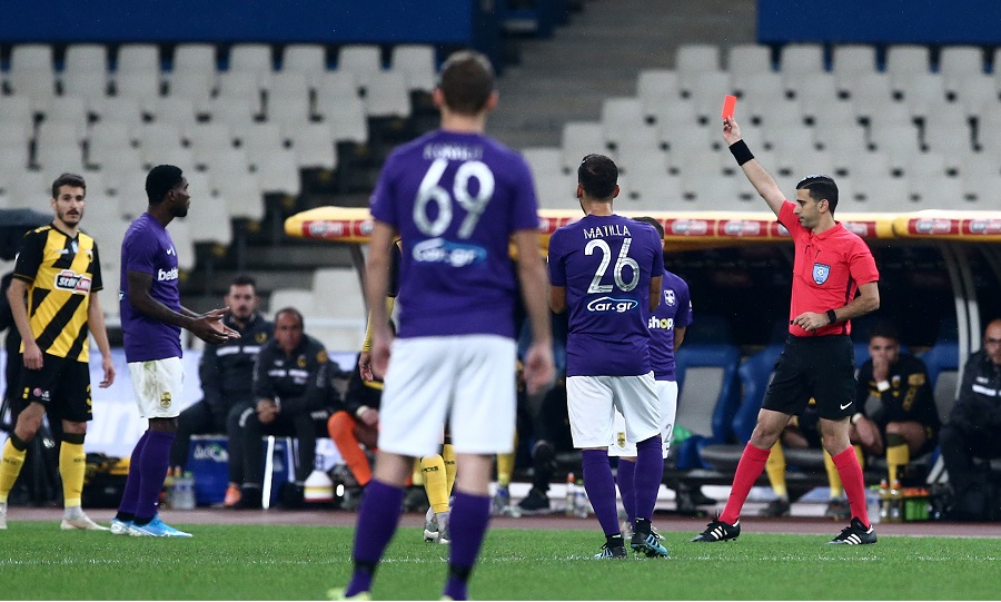 Η πρώτη «γιούχα» από τον κόσμο έκανε την... εμφάνισή της στο ημίχρονο, βλέποντας την ομάδα τους να είναι αποκαρδιωτική. Δεν έπιασε τόπο, βέβαια, αφού η ΑΕΚ συνέχιζε να παρουσιάζει κακό πρόσωπο στο ξεκίνημα του δευτέρου μέρους και ο Άρης ήλεγχε το ματς. Ωστόσο, στο 53ο λεπτό οι αριθμητικές ισορροπίες άλλαξαν όταν ο Ευαγγέλου απέβαλλε τον Ιντέγε για πάτημα στον Μάνταλο, αφού πρώτα είχε συμβουλευτεί το VAR. Ο Νιγηριανός πάτησε στον μηρό τον πεσμένο Μάνταλο, όμως στο τελευταίο ριπλέι της συνδρομητικής τηλεόρασης φάνηκε να μην βλέπει ότι είναι από κάτω του ο αρχηγός της Ένωσης. Ωστόσο, κανείς δεν μπορεί να γνωρίζει εάν είχε πρόθεση ή όχι ο Ιντέγε.