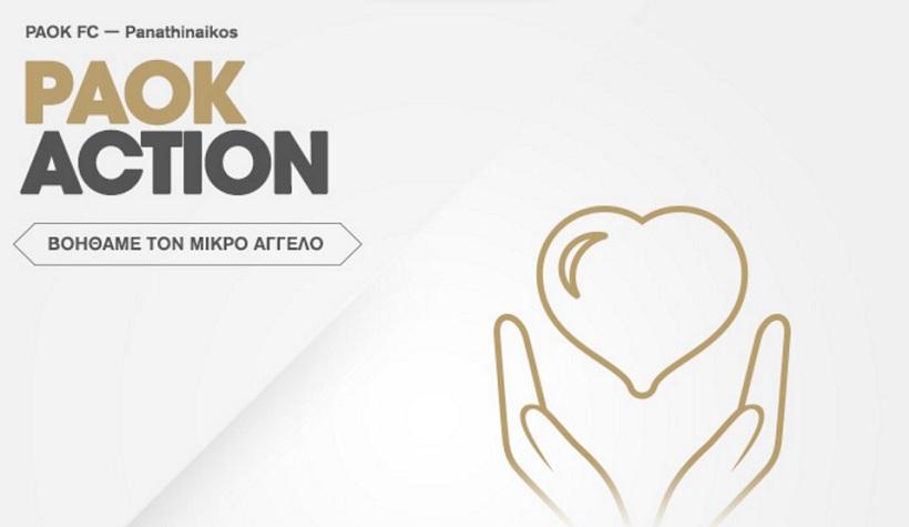 Η ΠΑΕ ΠΑΟΚ δίνει σε κάθε εντός έδρας αγώνα τη δυνατότητα στους φιλάθλους του Δικεφάλου να βοηθήσουν έναν συνάνθρωπό μας που το έχει πραγματικά ανάγκη, μέσω του PAOK Action. Μέρος των εσόδων από κάθε εντός έδρας αγώνα, διατίθεται για την ενίσχυση ανθρώπων που χρειάζονται ιατρική περίθαλψη και υποστήριξη.