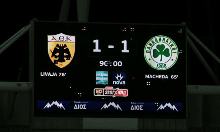 Ο Παναθηναϊκός δεν κινδύνευσε και προηγήθηκε με τον Μακέντα στο 65’, αλλά η ΑΕΚ βρήκε απάντηση χάρη στην κλάση του Λιγάβια δέκα λεπτά μετά, με το 1-1 να την ανεβάζει στη 2η θέση έστω και με ισοβαθμία.