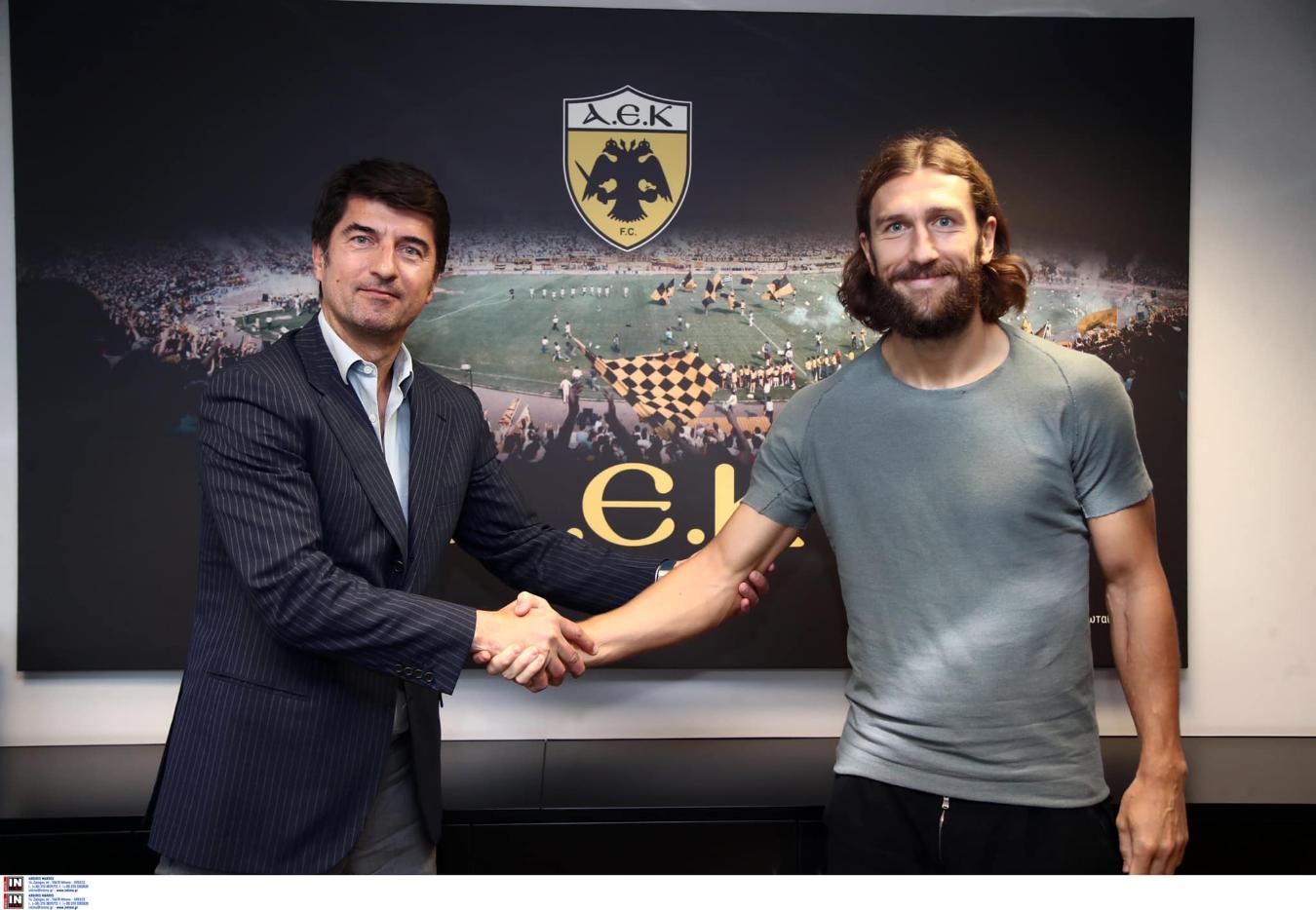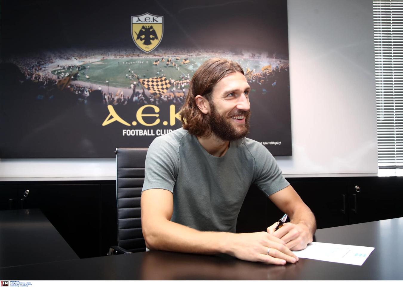 Με ένα πλατύ χαμόγελο, ο Ντμίτρο Τσιγκρίνσκι υπέγραψε το νέο του συμβόλαιο που θα τον κρατήσει στην ΑΕΚ για πέμπτο σερί χρόνο.