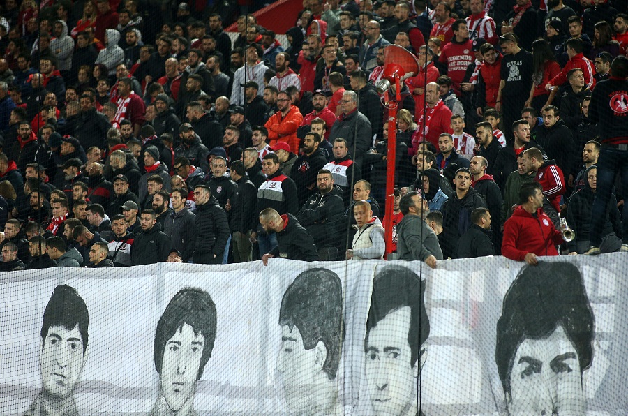 Προτού ξεκινήσει η αναμέτρηση, η οικογένεια των Πειραιωτών συγγενείς των ανθρώπων που έχασαν τη ζωή τους πριν από 39 χρόνια βρέθηκε μπροστά από το πέταλο των οργανωμένων και άφησε λουλούδια στη μνήμη τους.