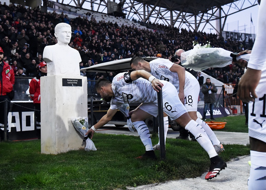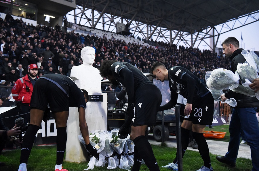Οι παίκτες της ομάδας της Θεσσαλονίκης, αλλά και των κρητικών τίμησαν τη μνήμη του πριν το μεταξύ τους ματς, καθώς άφησαν ανθοδέσμη στο άγαλμα που υπάρχει στην Τούμπα.
