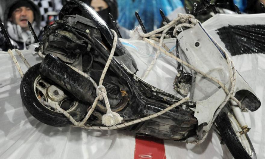 Μια διαφημιστική εταιρία εκμεταλλεύθηκε την εικόνα με το μηχανάκι που είχαν κρεμάσει στην Τούμπα οι οπαδοί του ΠΑΟΚ για να προωθήσει τις υπηρεσίες της...