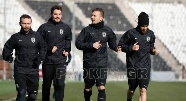 Ο Ρόμπερτ Μακ προπονείται κανονικά και φαίνεται πως υπολογίζεται για το ματς της ερχόμενης Τετάρτης, ενώ ο Γιώργος Κατσικάς ανεβάζει ρυθμούς, ώστε τις επόμενες μέρες να συμμετάσχει σιγά σιγά στις ασκήσεις με μπάλα. Ο Αλέξανδρος Τζιόλης έκανε πρόγραμμα φυσικής κατάστασης, ο Παναγιώτης Δεληγιαννίδης ατομικό κι ο Παναγιώτης Γλύκος θεραπεία.