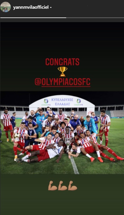 Ο Γάλλος μεσοαμυντικός παρακολούθησε τηλεοπτικά τον τελικό Κυπέλλου και μετά το τέλος του αγώνα συνεχάρη την ομάδα μέσω Instagram για τον τίτλο που κατέκτησε.