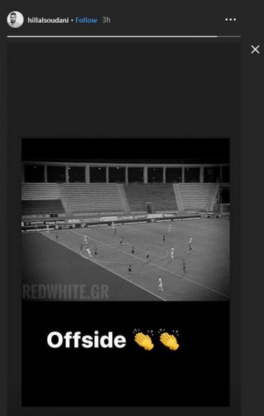 Ο Χιλάλ Σουντανί είδε το γκολ του να ακυρώνεται λανθασμένα για οφσάιντ και έκανε στη συνέχεια ποστάρισμα στο instagram... χειροκροτώντας την απόφαση του διαιτητή.