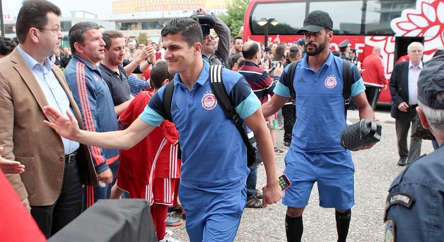 Ως είθισται, στους εκτός έδρας αγώνες του Ολυμπιακού στην επαρχία, η ομάδα έτυχε αποθεωτικής υποδοχής στο Αγρίνιο, κατά την άφιξή της για την αυριανή, τελευταία υποχρέωσή της στη σεζόν, την αναμέτρηση με τον Παναιτωλικό.