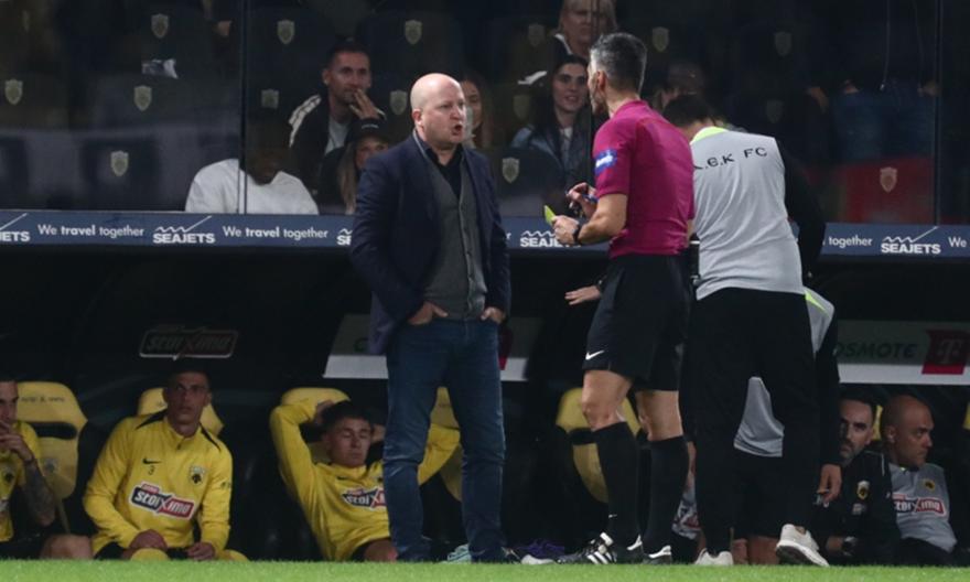 Στη συνέχεια, σχολίασε τη διαιτησία του αγώνα, τονίζοντας χαρακτηριστικά πως: «Μεγαλώνει και απογειώνει τη νίκη το γεγονός ότι ήρθε κόντρα σε εμετική διαιτησία. Συγκλονιστικά κακή διαιτησία, προκάλεσε τον κόσμο της ΑΕΚ και χάρισε τουλάχιστον 6 κάρτες στον Παναιτωλικό. Δεν ξέρω πώς θα μπορεί να κερδίζει στο μέλλον με τέτοιες διαιτησίες».