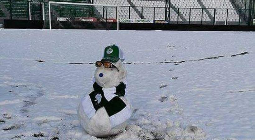Το χιόνι ελάχιστα είχε λιώσει και κάποιοι βρήκαν την ευκαιρία να «στολίσουν» το τοπίο με έναν… παναθηναϊκό χιονάνθρωπο.