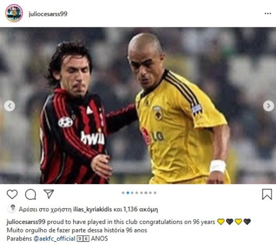 Την αγάπη του για την ΑΕΚ εξέφρασε μια ακόμη φορά ο Ζούλιο Σέζαρ.