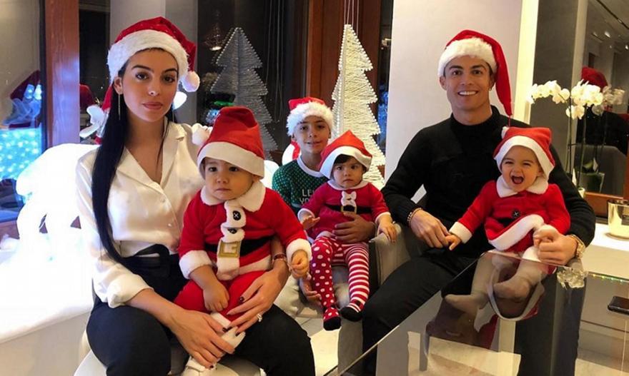 Ο Πορτογάλος σούπερ-σταρ της Γιουβέντους ποζάρει με την σύντροφό του, Τζορτζίνα, και τα τέσσερα παιδιά του, φορώντας μάλιστα και το σκούφο του Άη Βασίλη.