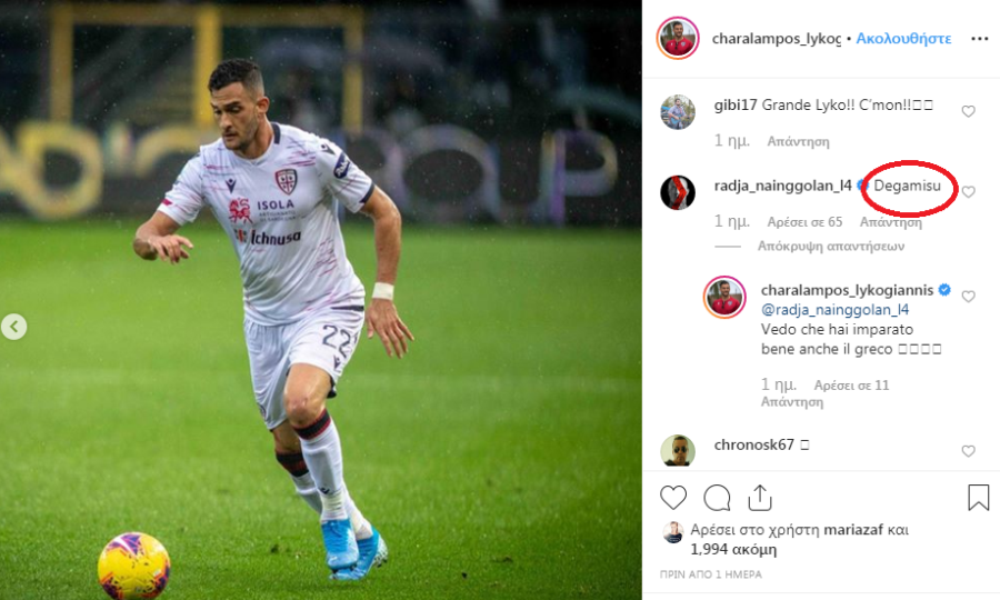 Σε ποστάρισμα που έκανε ο Μπάμπης Λυκογιάννης στο instagram, ο συμπαίκτης του στην Κάλιαρι έδειξε… μυημένος από τον συμπατριώτη μας.