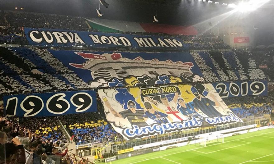 Ένα εντυπωσιακό κορεό πριν ξεκινήσει το ντέρμπι με την Γιουβύντους δημιούργησαν οι οπαδοί της Ίντερ.