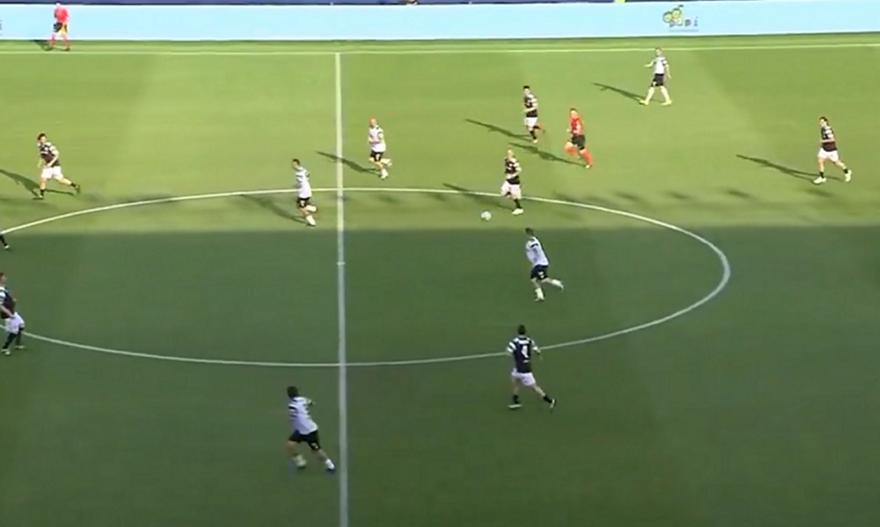 Μάλιστα, το σουτ πήγε προς τη γωνία, με τον πορτιέρε να μπερδεύεται, να μην έχει και τ' αντανακλαστικά άλλων εποχών και ηλικιών και να δέχεται το γκολ που έγινε viral από τον 48χρονο Τότι.