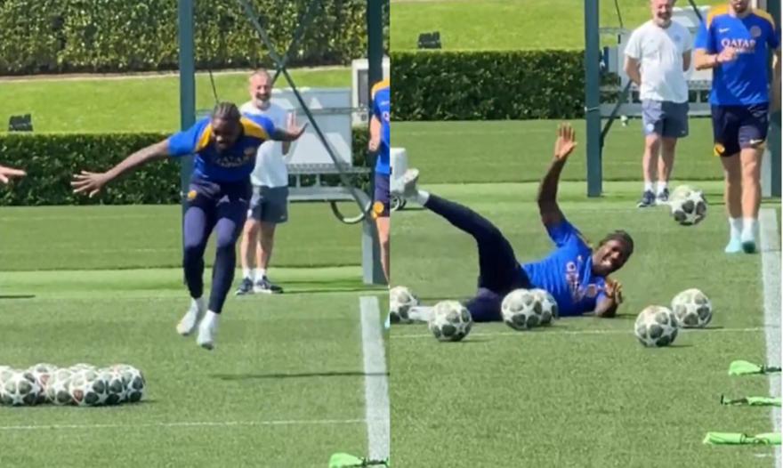 Στην προπόνηση της Τρίτης, την τελευταία πριν το ταξίδι στη Βαρκελώνη για τον πρώτο ημιτελικό του Champions League με την Μπαρτσελόνα, ο Γάλλος επιθετικός είχε πολλή όρεξη κι έκανε πάλι τα δικά του.