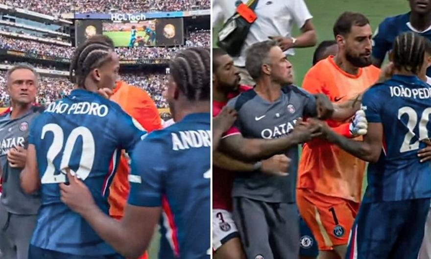 Η χειρότερη στιγμή όμως ήταν, όταν ο προπονητής της Παρί, Λουίς Ενρίκε, «συνελήφθη» από τον φακό, να χτυπά τον σκόρερ του τρίτου γκολ των Λονδρέζων, Ζοάο Πέδρο!