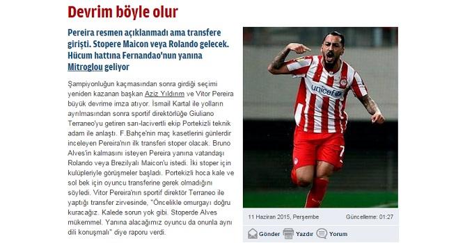 Το όνομα που ξεχωρίζει, σύμφωνα με σημερινό δημοσίευμα της ιστοσελίδας «fotomac.com.tr», είναι εκείνο του Κώστα Μήτρογλου. Το ρεπορτάζ του σάιτ αναφέρει πως ο 46χρονος τεχνικός έχει εισηγηθεί την απόκτηση του διεθνούς επιθετικού, με τον οποίο συνεργάστηκε στον Ολυμπιακό και θα επιστρέψει στη Φούλαμ. Το δημοσίευμα αναφέρει πως η «Φενέρ» θα ψάξει την περίπτωσή του, γνωρίζοντας όμως πολύ καλά πως θα χρειαστούν αρκετά χρήματα για την απόκτηση του «πιστολέρο».