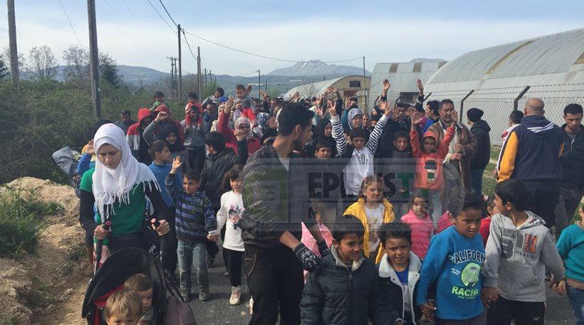 Με βασικό σύνθημα να ανοίξουν τα σύνορα, εκατοντάδες πρόσφυγες και μετανάστες από το κέντρο φιλοξενίας στον Κατσικά πραγματοποιούν αυτήν ώρα ειρηνική πορεία διαμαρτυρίας μέσα στο προάστιο Κατσικά, υπό τη διακριτική παρουσία της αστυνομίας.
