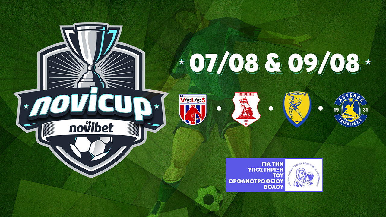 H Novibet είναι χορηγός του φιλανθρωπικού τουρνουά NoviCup by Novibet που πραγματοποιείται στις 7 και 9 Αυγούστου, με τη συμμετοχή και των ομάδων Βόλου, Παναιτωλικoύ και Πανσερραϊκού και Αστέρα Τρίπολης. Η εταιρεία παραμένει πιστή στη δέσμευσή της για προώθηση του υγιούς αθλητισμού και της κοινωνικής προσφοράς και σε αυτό το πλαίσιο υποστηρίζει ενεργά το τουρνουά που υλοποιείται για δεύτερη συνεχόμενη χρονιά στην πόλη του Βόλου, για καλό σκοπό.