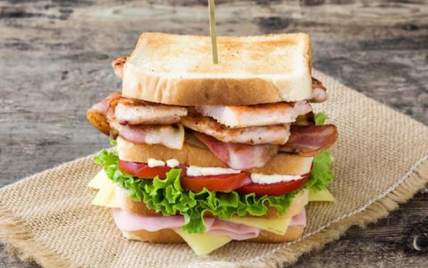 Το πιο πληθωρικό κλαμπ σάντουιτς - γεύμα έχει τέσσερις φέτες ψωμιού αντί για τρεις, φιλέτο κοτόπουλου, αλλαντικά, λαχανικά και μαγιονέζα και είναι χορταστικό και εντυπωσιακό.