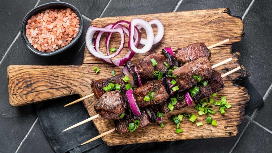 Το μοσχάρι δεν είναι συνηθισμένη επιλογή για σουβλάκια στο σπίτι, ωστόσο το μαρινάρισμα στον πολτό των ακτινιδίων θα τα μαλακώσει και θα τους δώσει πολύ ιδιαίτερη γεύση.