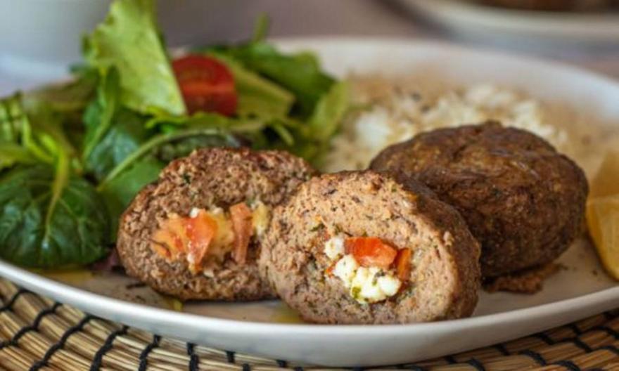 Ζουμερός κιμάς, με φέτα που λιώνει γλυκά και δροσερή ντομάτα στην καρδιά του κάθε μπιφτεκιού.