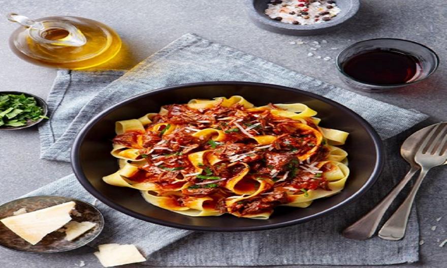 Λαχταριστό μοσχαράκι ραγού, μαγειρεμένο αργά, σβησμένο με κόκκινο κρασί και σερβιρισμένο με φρέσκες ταλιατέλες. Ζεστό, πλούσιο και γεμάτο άρωμα είναι το απόλυτο πιάτο για τα μεσημέρια της Κυριακής.