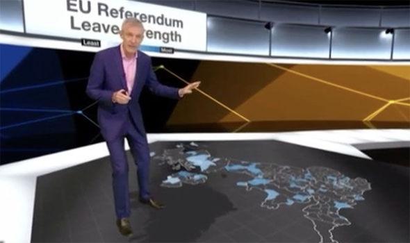 Ο έμπειρος πολιτικός σχολιαστής του BBC Jeremy Vine μετέδιδε τα αποτελέσματα του δημοψηφίσματος με την βοήθεια των γραφημάτων που είχε στο video wall πίσω του και στο δάπεδο, ενώ όμως εκείνος κατέβαλε κάθε προσπάθεια να εξηγήσει στους τηλεθεατές πώς ψήφισαν οι Βρετανοί ψηφοφόροι ανά εκλογική περιφέρεια, σύμφωνα με τους χρήστες στο Twitter, τα γραφικά ήταν τόσο ακατανόητα, που πολλοί έγραψαν ότι αυτοί που τα σχεδίασαν ήταν σε κατάσταση μέθης!