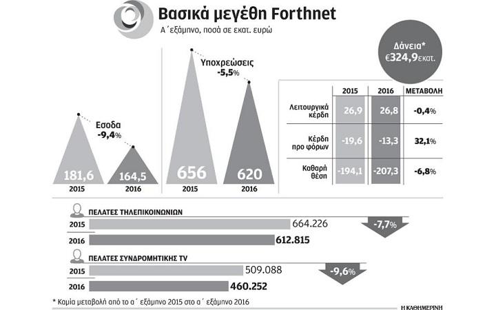 Αν και η δήλωση αυτή του προέδρου της Wind δημοσιοποιήθηκε την επομένη από τα μέσα ενημέρωσης, η διοίκηση της Forthnet ζήτησε την περασμένη εβδομάδα επίσημη ενημέρωση σχετικά με την εξέλιξη του δικαιώματος της Vodafone επί μετοχών Forthnet, ενόψει και της επικείμενης δημοσιοποίησης των αποτελεσμάτων της επιχείρησης για το 2016. Η Vodafone απάντησε εγγράφως την περασμένη Δευτέρα, τόσο στη διοίκηση της Forthnet, όσο και στην Επιτροπή Κεφαλαιαγοράς, επιβεβαιώνοντας ουσιαστικά όσα έχει δηλώσει πριν περίπου ενάμιση μήνα ο κ. Ζαρκαλής. Σύμφωνα με πληροφορίες, οι δύο εταιρείες σταμάτησαν το «κυνήγι» της Forthnet, από τη στιγμή που συνειδητοποίησαν ότι οι πιστώτριες τράπεζες απορρίπτουν οποιοδήποτε σενάριο απομείωσης του δανεισμού της επιχείρησης. Η Forthnet οφείλει πάνω από 650 εκατ. ευρώ σε πιστωτές και προμηθευτές, εκ των οποίων πάνω από τα μισά οφείλονται στις πιστώτριες τράπεζες. Το παραπάνω ποσό αντιστοιχεί σε περίπου 12 φορές τα ετήσια κέρδη ΕΒΙΤDA της επιχείρησης.
