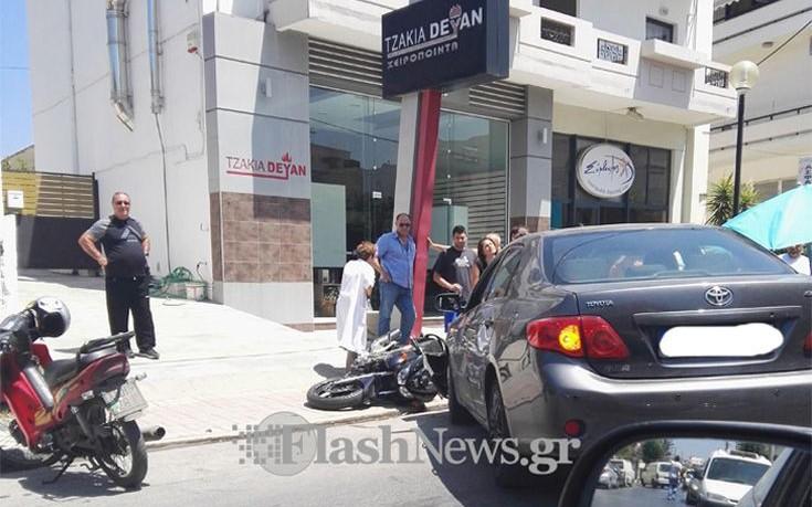 Από τη σύγκρουση ο οδηγός του δικύκλου βρέθηκε σχεδόν κάτω από τις ρόδες του αυτοκινήτου με αποτέλεσμα να τραυματιστεί σοβαρά.