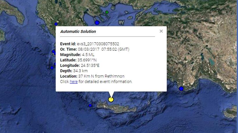 Ο σεισμός ήταν έντασης, 4,5 Ρίχτερ, με εστιακό βάθος τα 35 χιλιόμετρα, σύμφωνα με το Γεωδυναμικό Ινστιτούτο.