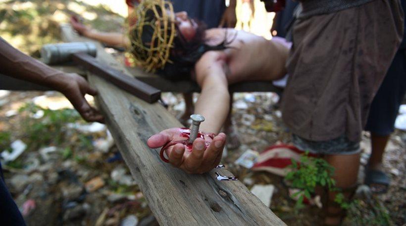 Σκληρές εικόνες από το παράξενο αυτό έθιμο, στο πλαίσιο του οποίου εθελοντές βασανίζονται πραγματικά για να βιώσουν τον πόνο που έζησε ο Θεάνθρωπος, κάνουν τον γύρο του διαδικτύου.
