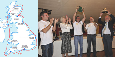 Ο αγώνας διαρκεί συνολικά 9 ημέρες με αφετηρία και τερματισμό το Πόρτσμουθ. Τα πληρώματα ξεκίνησαν στις 21 Ιουνίου και τερμάτισαν στις 30 του ίδιου μήνα, αφού πρώτα πέρασαν κατά σειρά από τις περιοχές: Πλίμουθ, Μόλφορντ Χέιβεν, Μπανγκορ, Ομπαν, Ινβερνές, Εδιμβούργο, Νιουκάστλ και Λούεστοφ.
