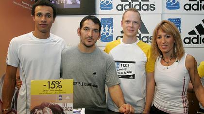 Οι σπουδαίοι αθλητές βρέθηκαν στον εκθεσιακό χώρο της Adidas (η οποία είναι ο επίσημος χορηγός του μαραθωνίου) και αφού υπέγραψαν δεκάδες αυτόγραφα και φωτογραφήθηκαν με αρκετούς θαυμαστές τους, αναφέρθηκαν τόσο στον χορηγό τους, όσο και στη σπουδαιότητα του αυριανού αγώνα.