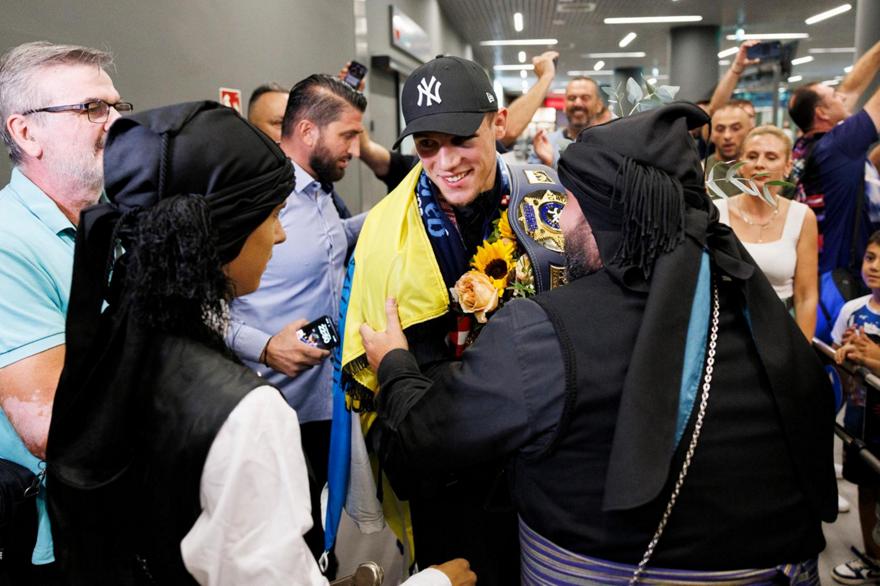 Ο πρώτος Έλληνας παγκόσμιος πρωταθλητής Ανδρών στο άθλημα έφτασε στη Θεσσαλονίκη έχοντας στο στήθος το μετάλλιο και στα χέρια του τη ζώνη που σφράγισε τη μεγάλη του επιτυχία. Η υποδοχή ήταν αντάξια του άθλου του: περισσότεροι από 200 φίλοι, συγγενείς και συναθλητές τον περίμεναν για να τον σηκώσουν στα χέρια και να τον αποθεώσουν.